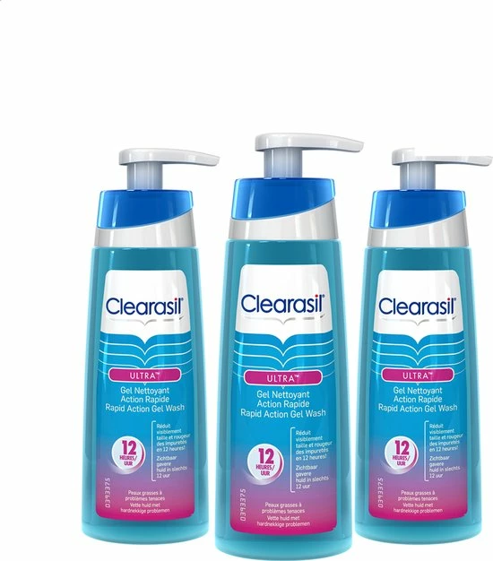 Clearasil Daily Clear Scrub Wash bestaat uit een klinisch geteste formule die puistjes bestrijdt. De dode huidcellen worden verwijderd en de huid wordt op milde wijze gereinigd. Op deze manier wordt er voorkomen dat de poriën verstopt raken. Dit zorgt voor een schonere en gladdere huid. Dit is een grootverpakking en bevat 3x 200ml. Zichtbare verbetering in slechts 12 uur Dermatologisch getest Dagelijks te gebruiken Speciaal voor de vette huid
