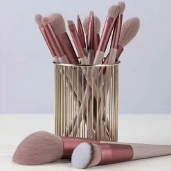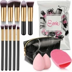 Evvie Set Van 10 Make-up Kwasten Met Beauty Blender (2x) En Brushegg In Etui – Zwart/goud