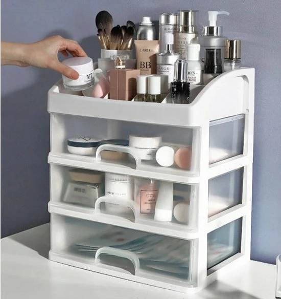 Deze super handige Organizer moet je echt in huis hebben! Met de 3 lades kun je veel cosmetica , sieraden etc opbergen. Zo ziet alles er weer helemaal netjes uit. Deze Organizer is gemaakt van Kunsstof en is wit van kleur, Hiermee houdt u de orde, het past in elk interieur.