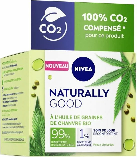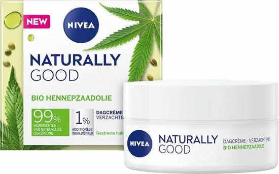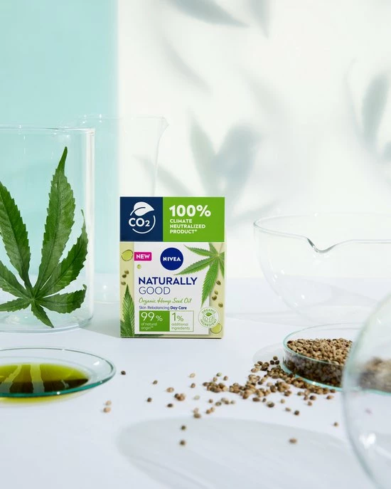 De nieuwe NIVEA NATURALLY GOOD Dagcrème met Bio Hennepzaadolie is ontwikkeld om je gestreste huid weer in balans te brengen en te kalmeren. De formule met Bio Hennepzaadolie en Jojoba-olie verzacht en kalmeert de huid. Het egaliseert de huid voor een merkbaar stralende en zachte huid. De NIVEA NATURALLY GOOD Dagcrème bevat 99% ingrediënten van natuurlijke oorsprong en 1% additionele ingrediënten voor formulestabiliteit en veiligheid – geïnspireerd door de natuur om te zorgen voor jouw huid en de planeet.