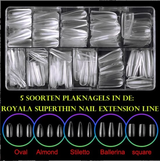 Wil je full cover nagelextensions (plaknagels) met de meest natuurlijk look? Ga dan voor deze plaknagels uit de “Royala Superthin Nail Extension Line” met keuze uit 5 verschillende vormen. Almond – Oval – Ballerina – Stiletto – Short Square.