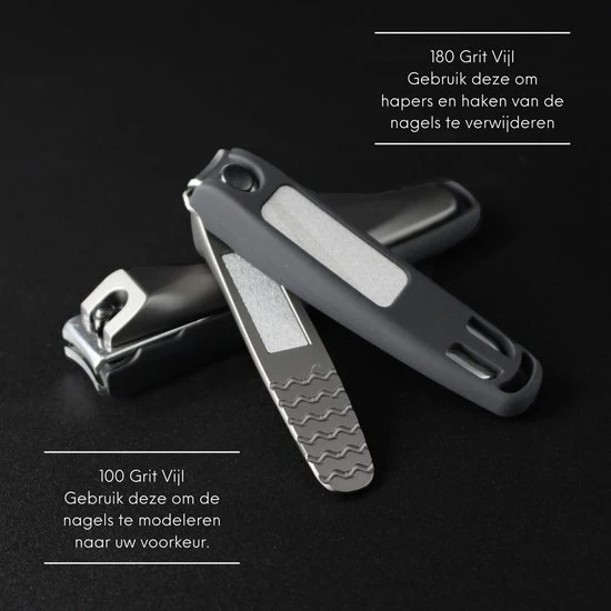 - Scherp en nauwkeurig knippen: De scherpe en nauwkeurige mesjes op zowel de grote als de kleine teennagelknipper geven een zeer precieze snede zonder de nagel te breken, eraan te trekken of te scheuren. En de twee ingebouwde vijlen kunnen u helpen om gladde nagels te krijgen. Hiermee krijgt u met minimale inspanning een resultaat in een zuivere snede, in plaats van gekartelde randen achter te laten, nagels te scheuren of veel te veel druk te vereisen om te gebruiken.